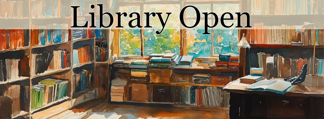 Library open for browsing and checking out books from 11am to 3pm. No appointment necessary. Directions: When facing the front of the church, the doors on the far left will be unlocked during Library Open hours. Go through there and go down the hallway on the left. You should see the library on the right!